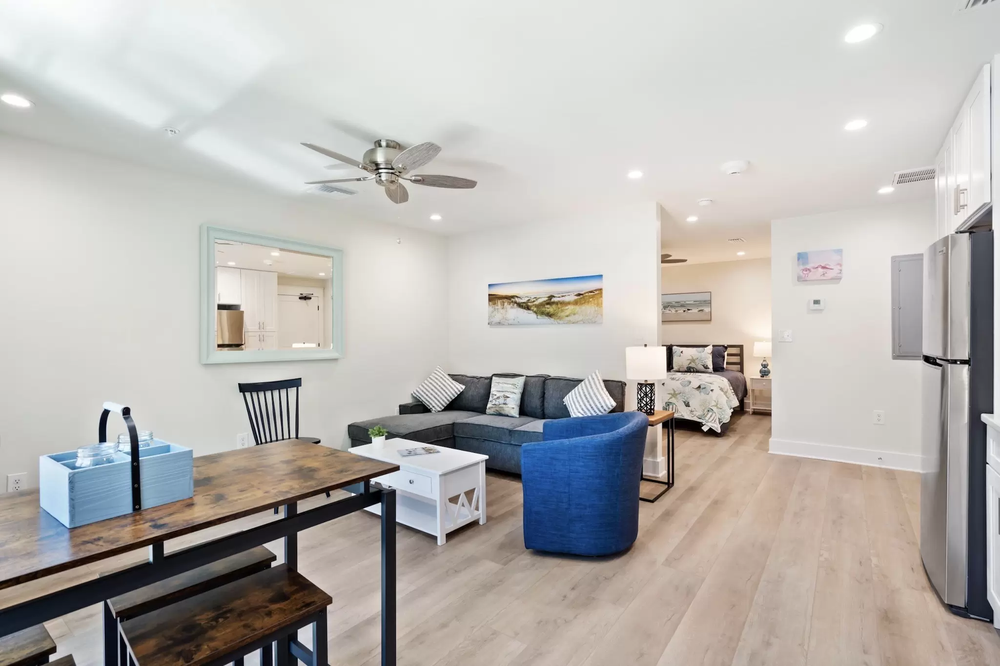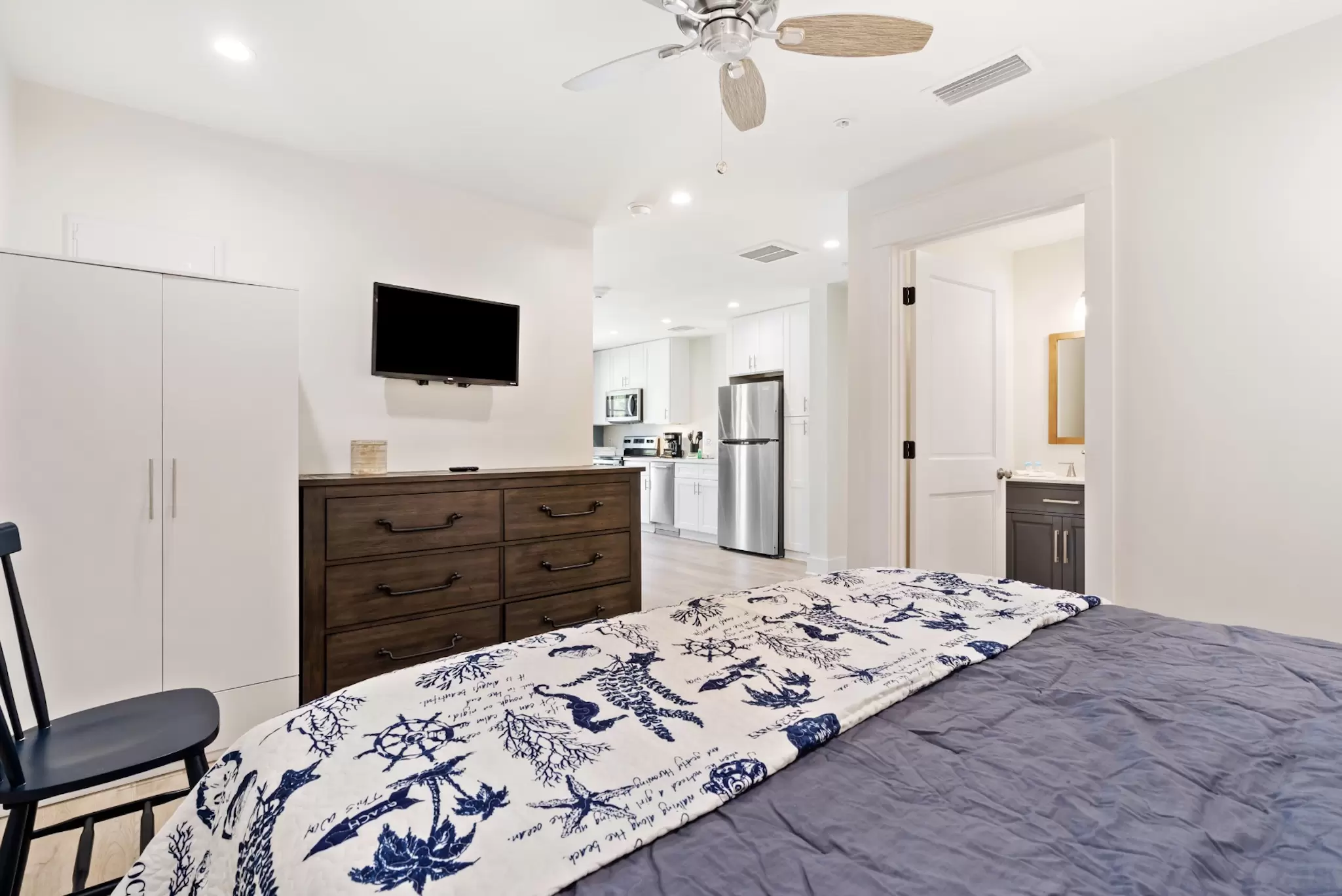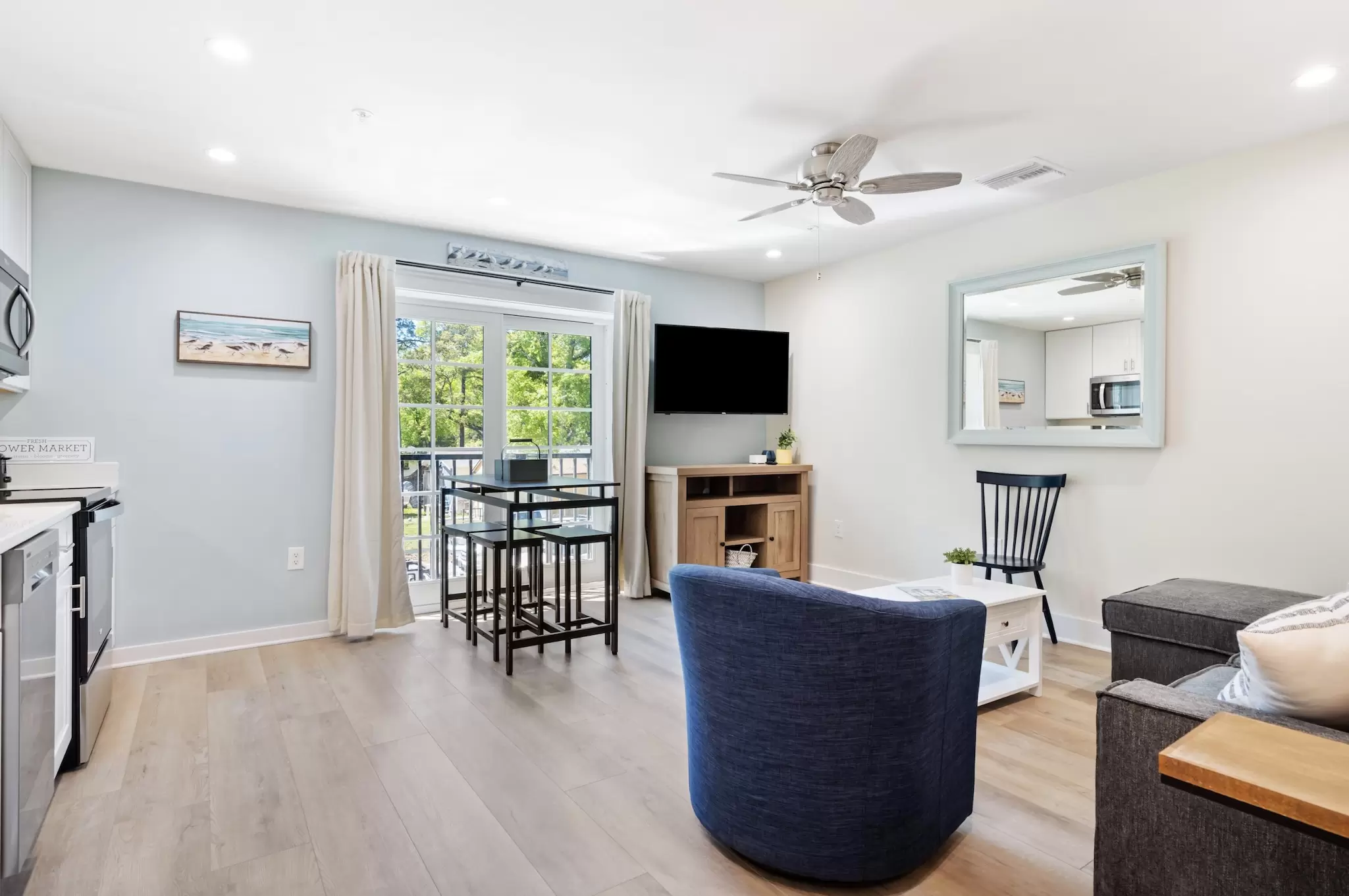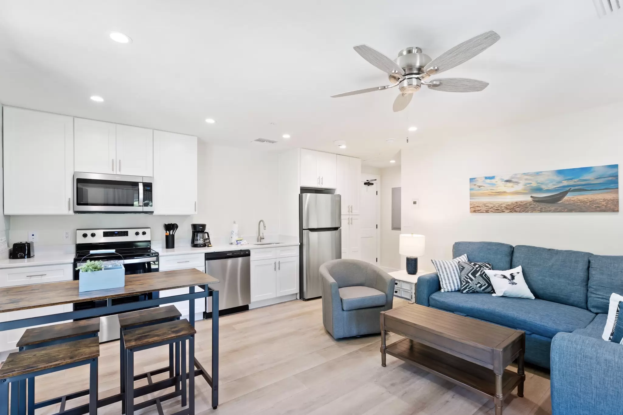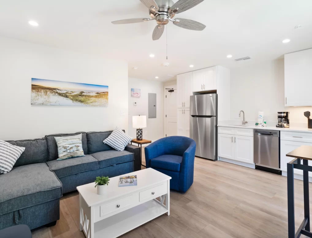A peaceful, stylish haven designed for ultimate relaxation. This pristine interior loft combines modern luxury with cozy coastal vibes, offering a quiet sanctuary with a full kitchen just steps from the excitement.