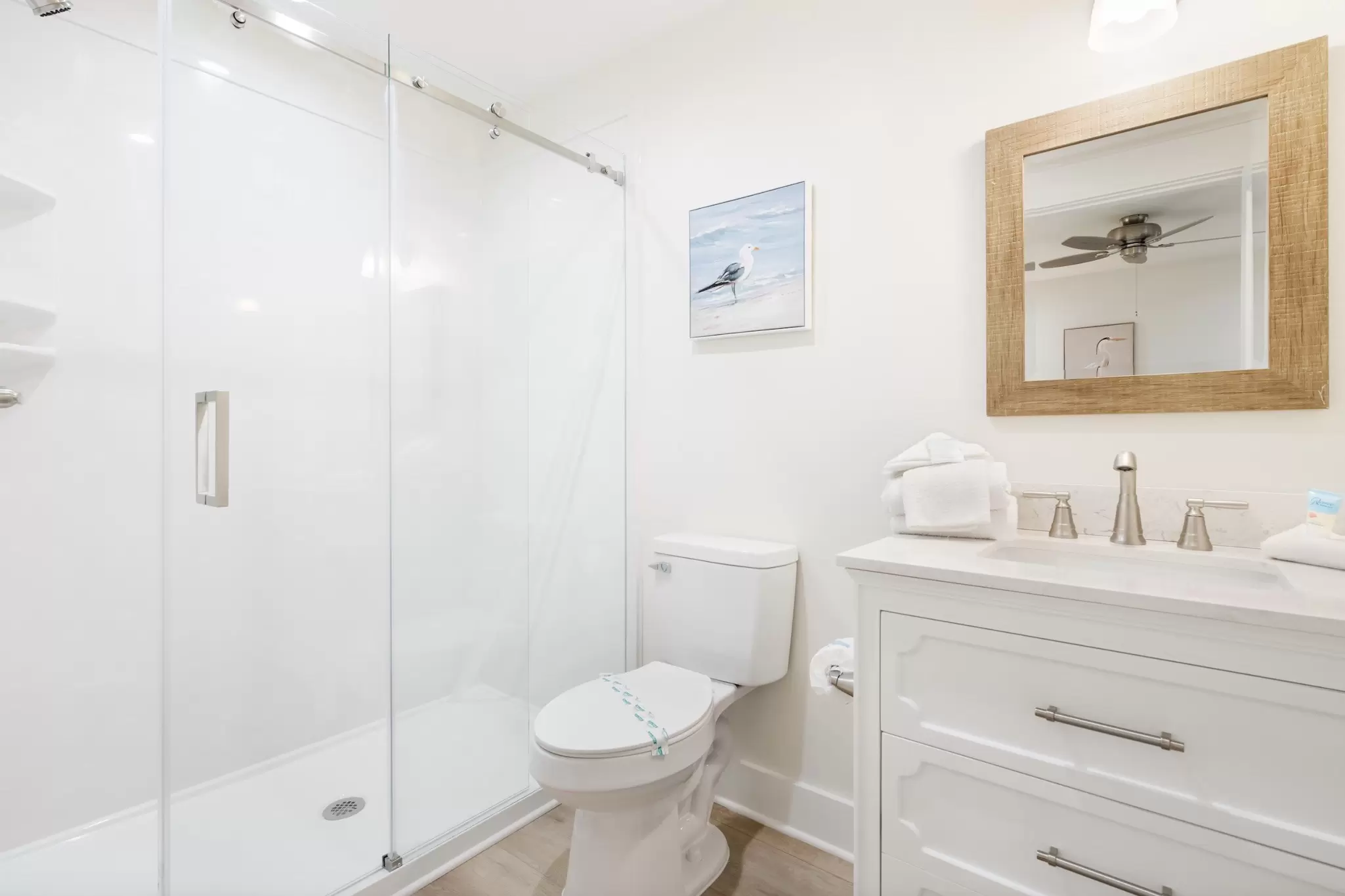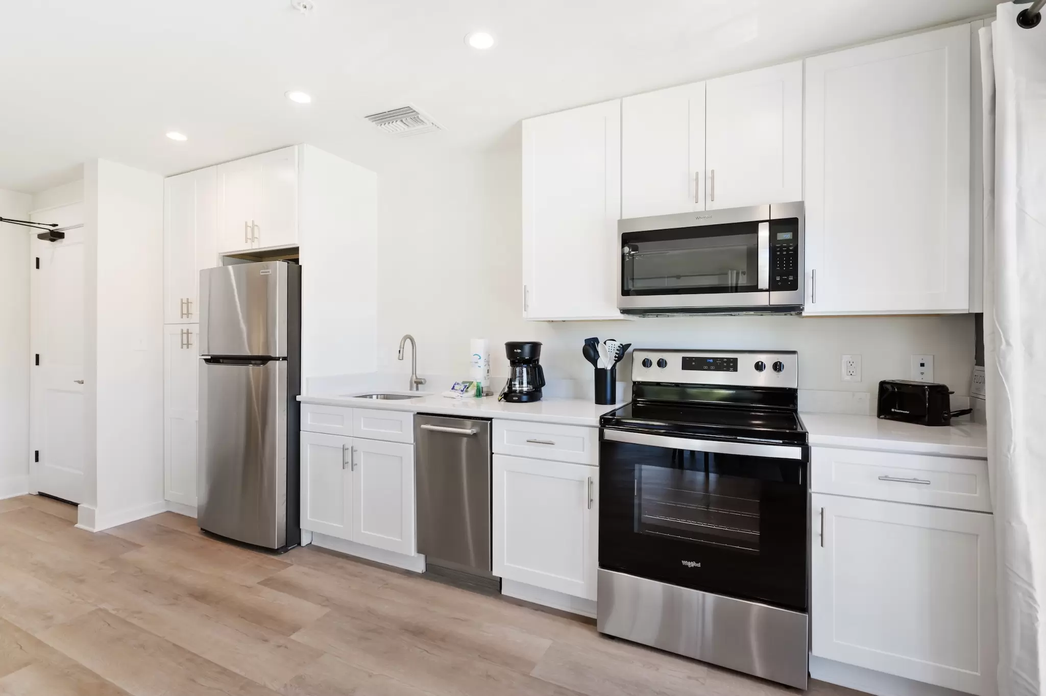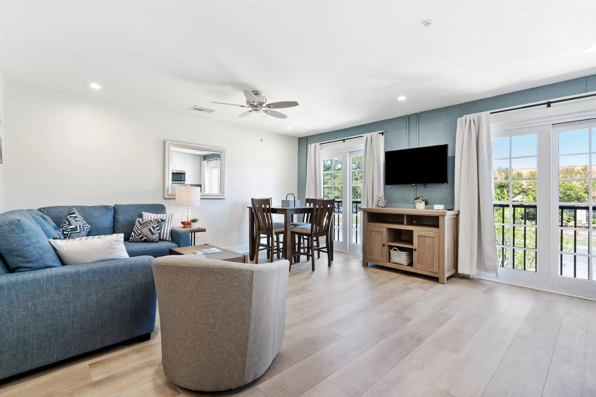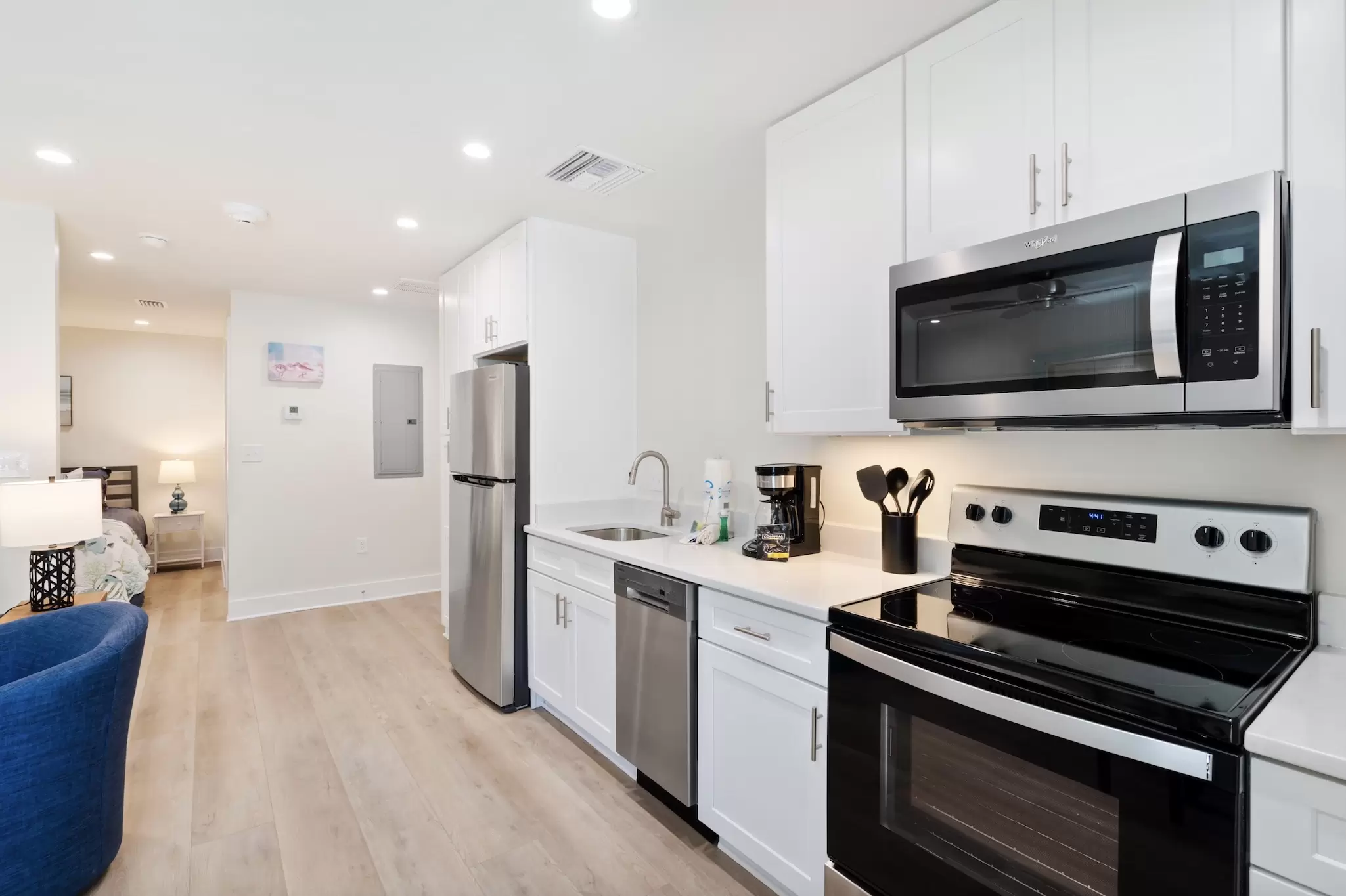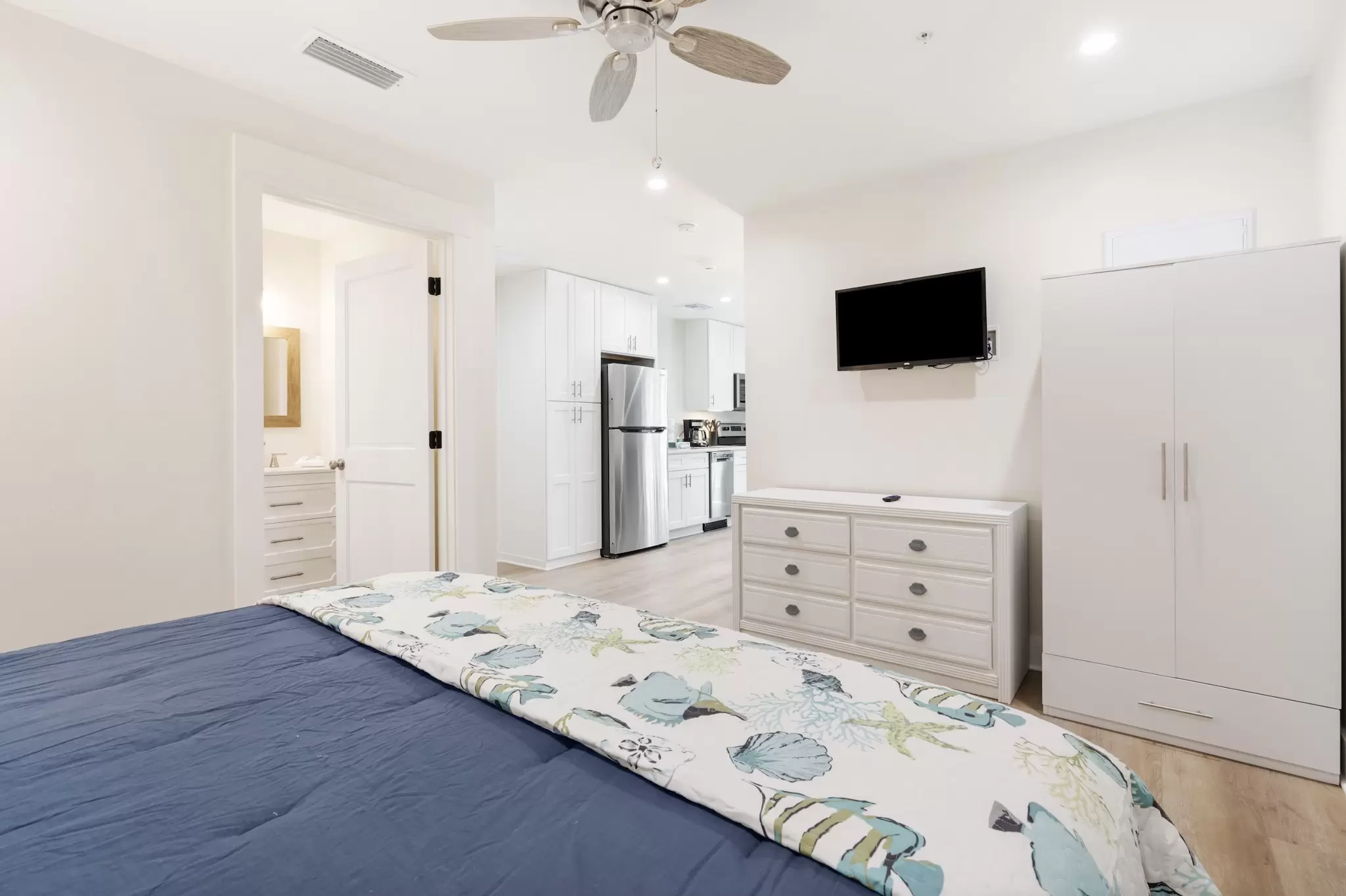 A peaceful, stylish haven designed for ultimate relaxation. This pristine interior loft combines modern luxury with cozy coastal vibes, offering a quiet sanctuary with a full kitchen just steps from the excitement.